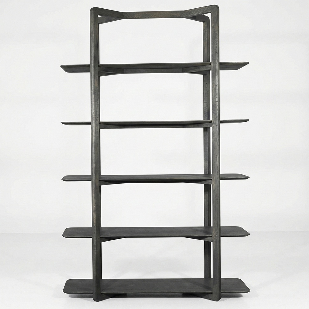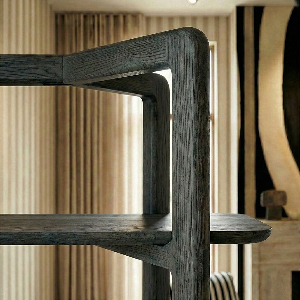 Adaugă o notă de rafinament spațiului tău cu această etajeră înaltă din stejar, o piesă de mobilier care redefinește organizarea estetică. Cu un design sculptural și un finisaj închis (dark oak), această bibliotecă deschisă devine instantaneu punctul focal al oricărei încăperi, fie că este vorba despre un living modern, un birou "home office" sau un colț de lectură relaxant.